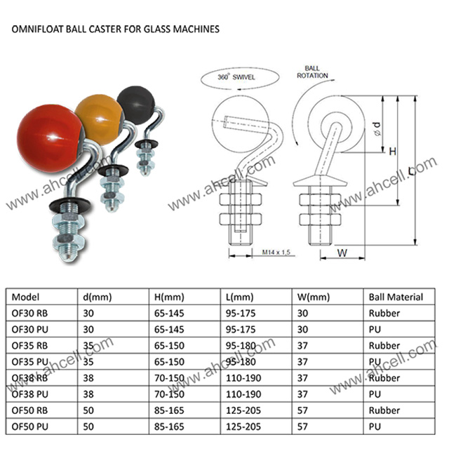 50mm ball Omnifloat Type Ball Caster for Glass Machines